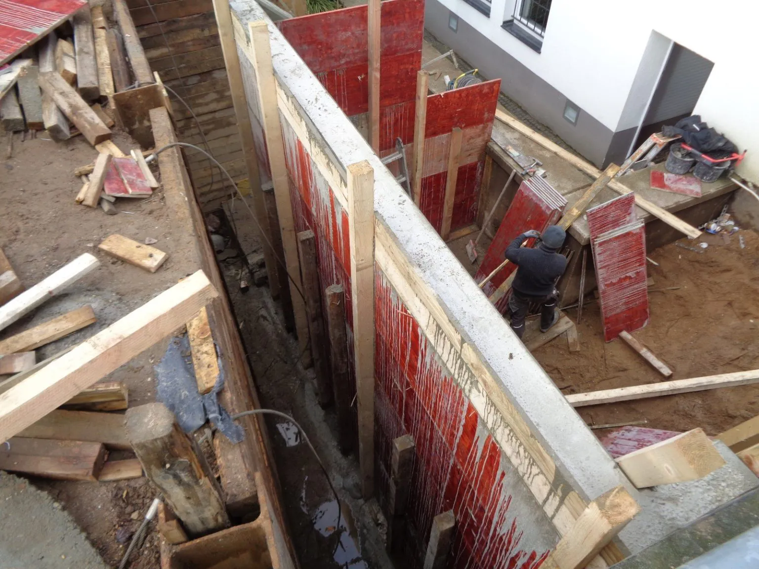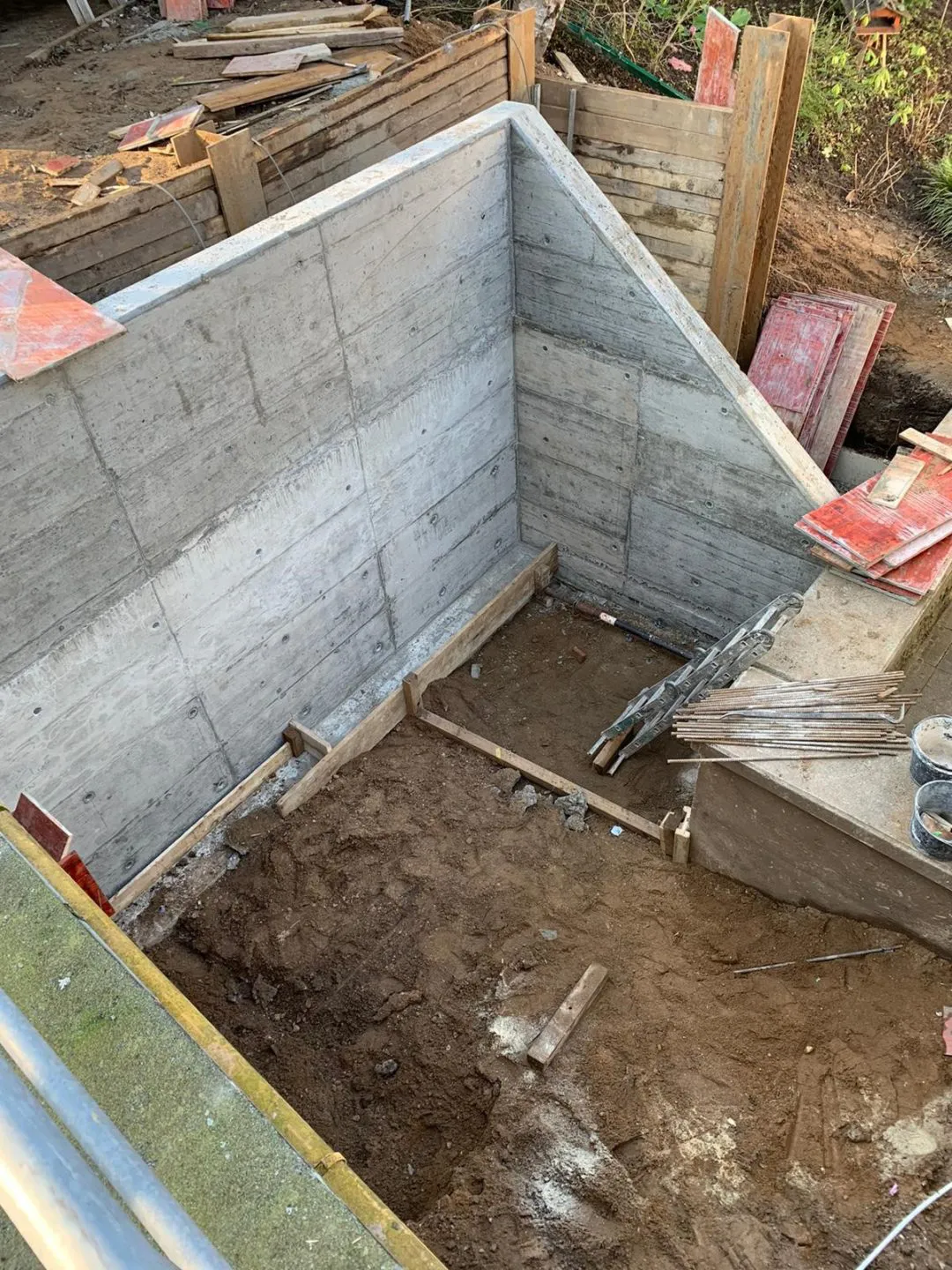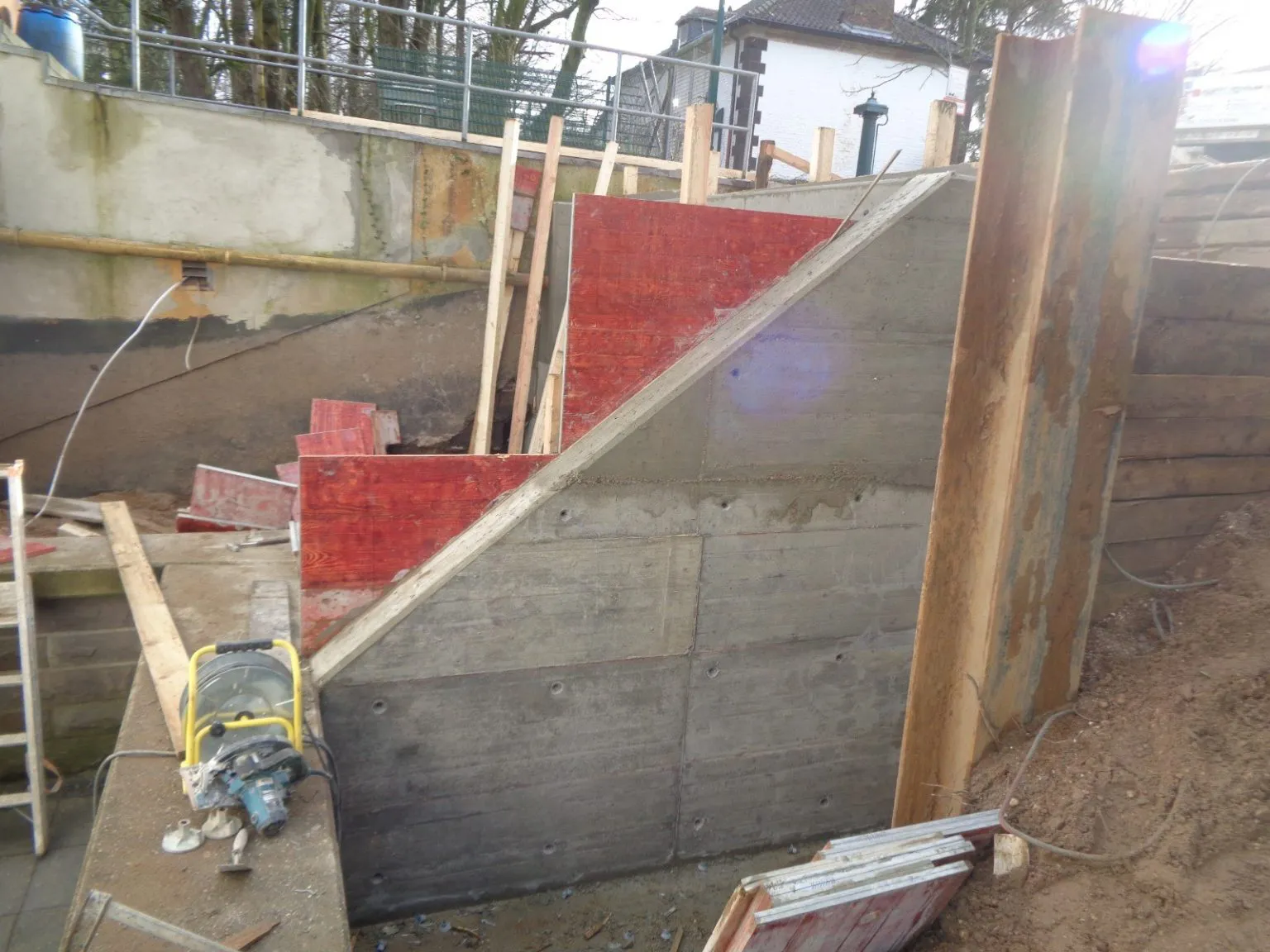 Die Betonarbeiten sind abgeschlossen. Aktuell wurden die Mauerschnitte gesetzt um die überflüssige Ecke zu entfernen.
