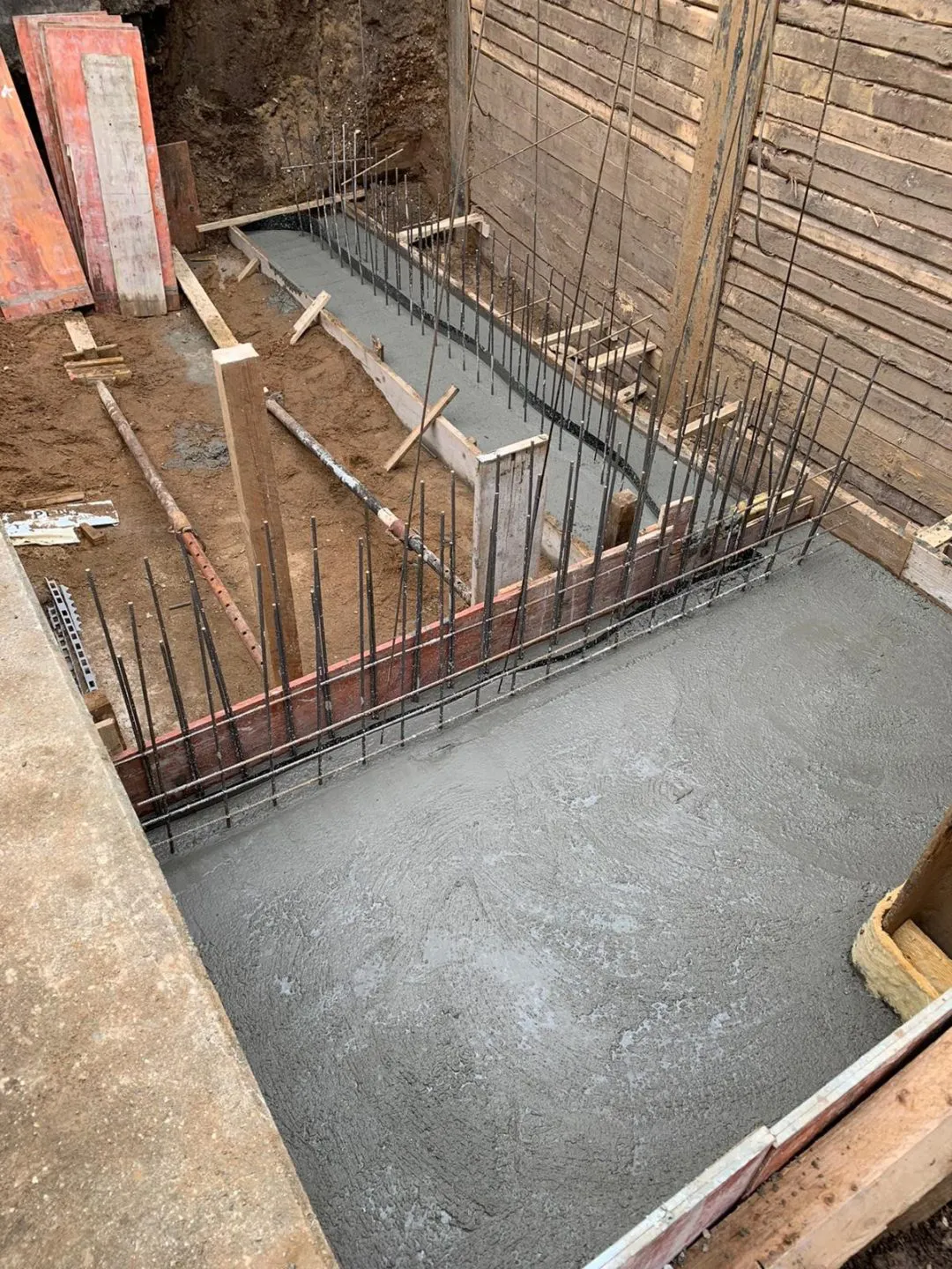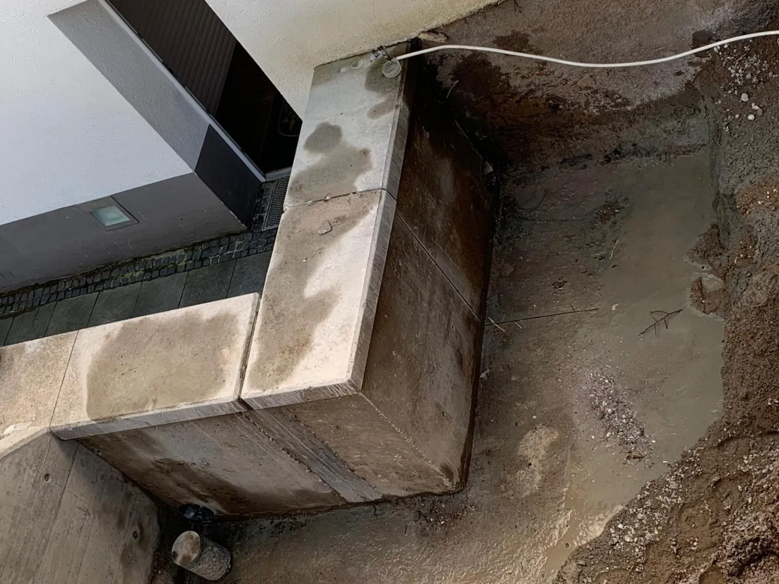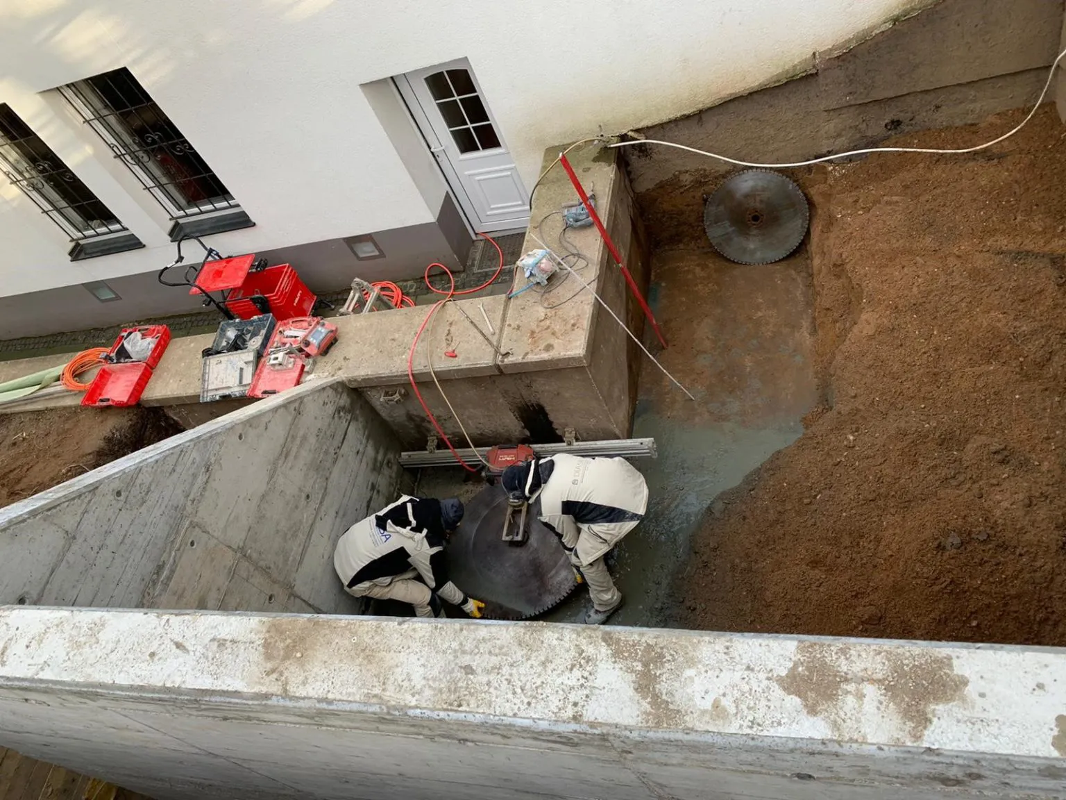 Die Betonarbeiten sind abgeschlossen. Aktuell wurden die Mauerschnitte gesetzt um die überflüssige Ecke zu entfernen.
