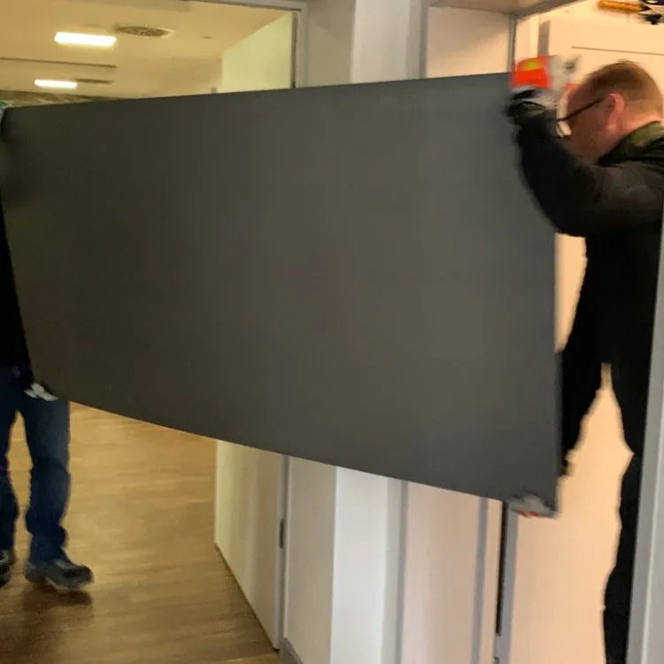 Anlieferung der Heraklit-Platten für den Innenbereich, sowie der Stahlplatten für die Außenwände.
