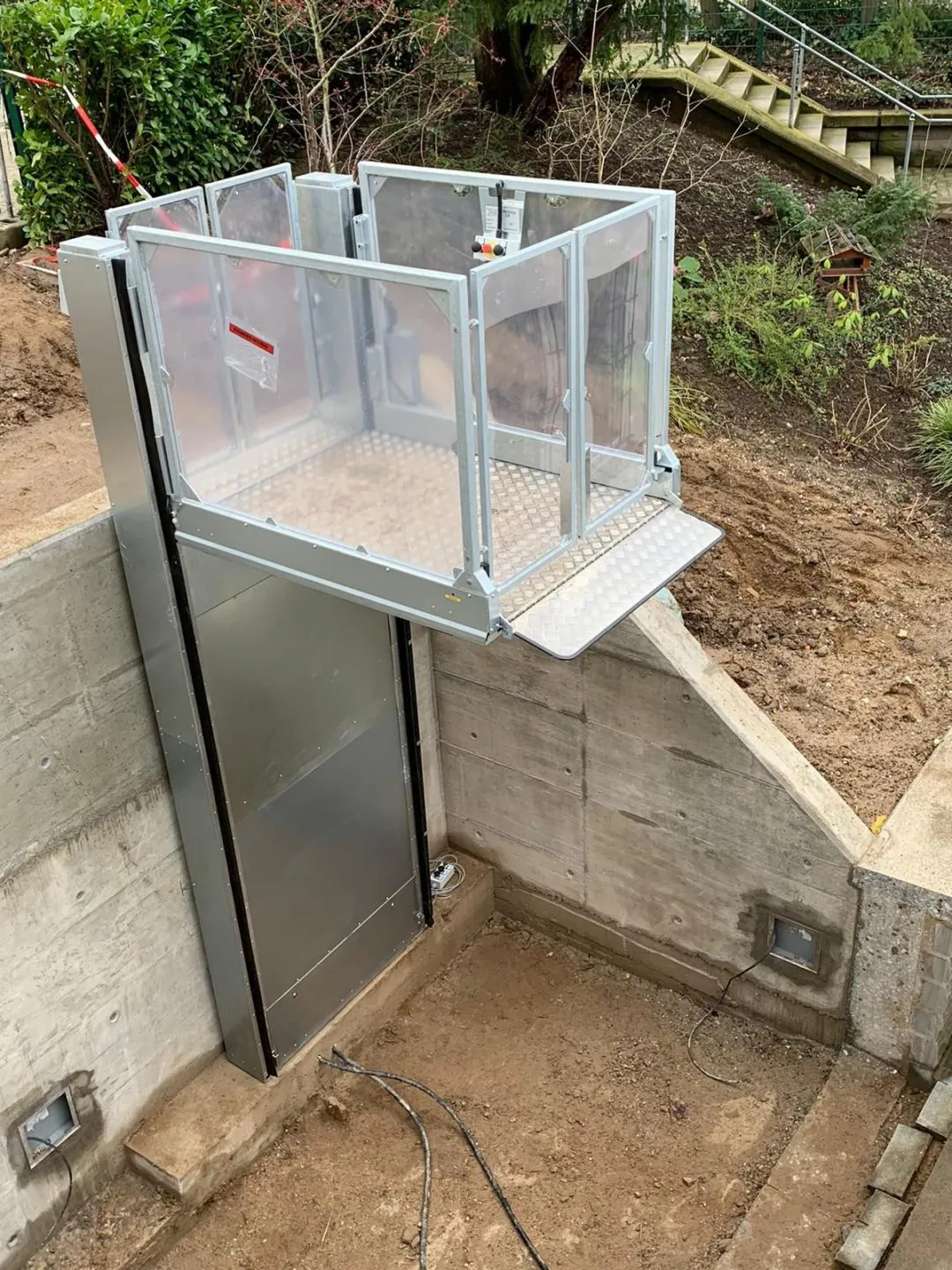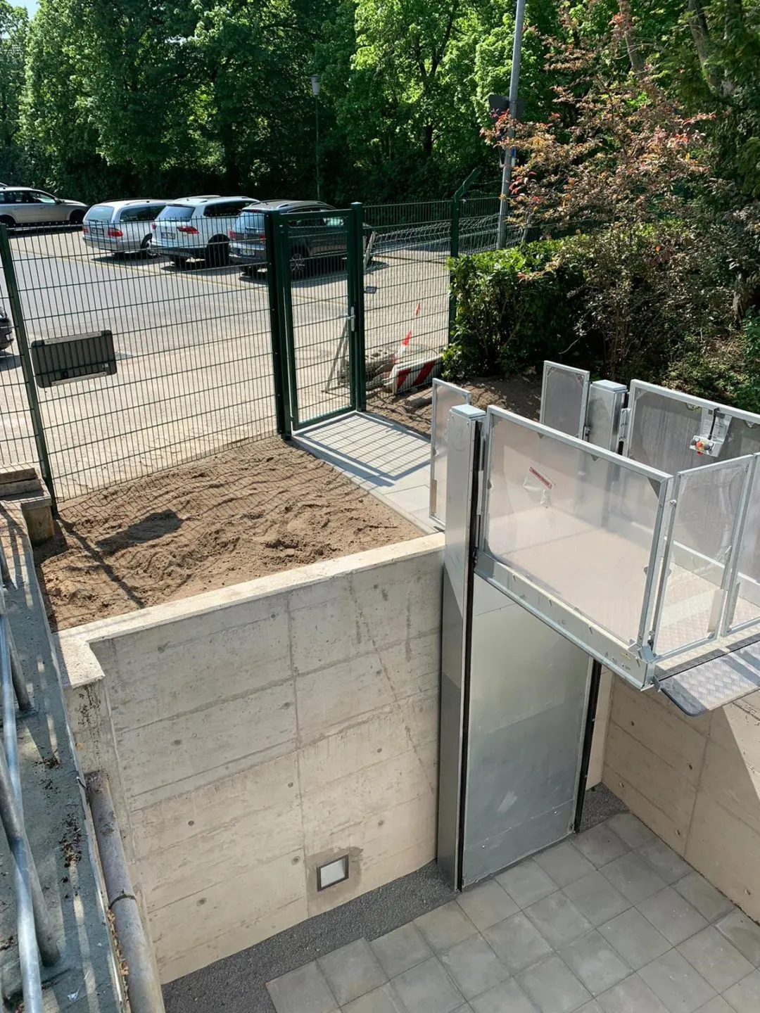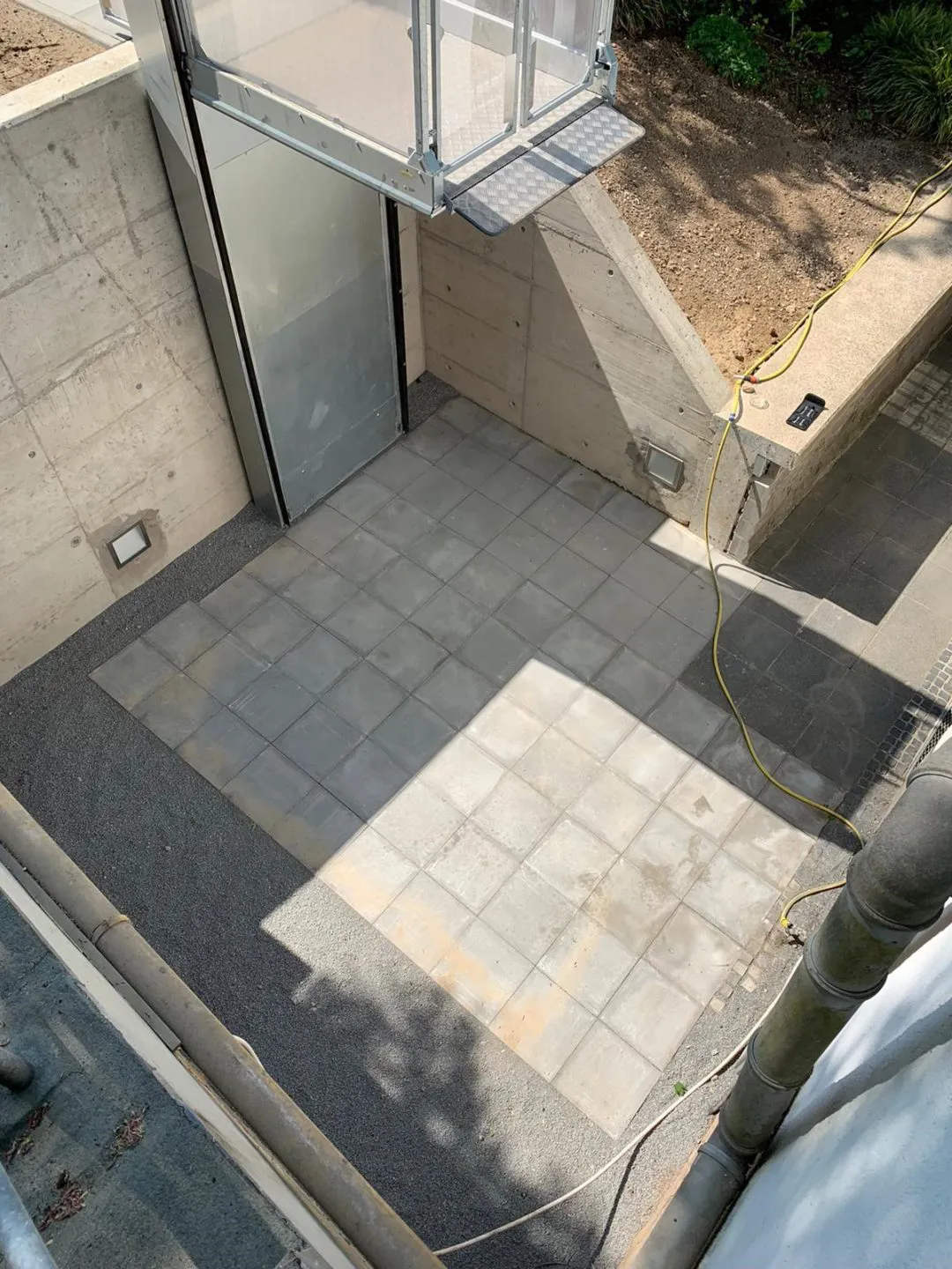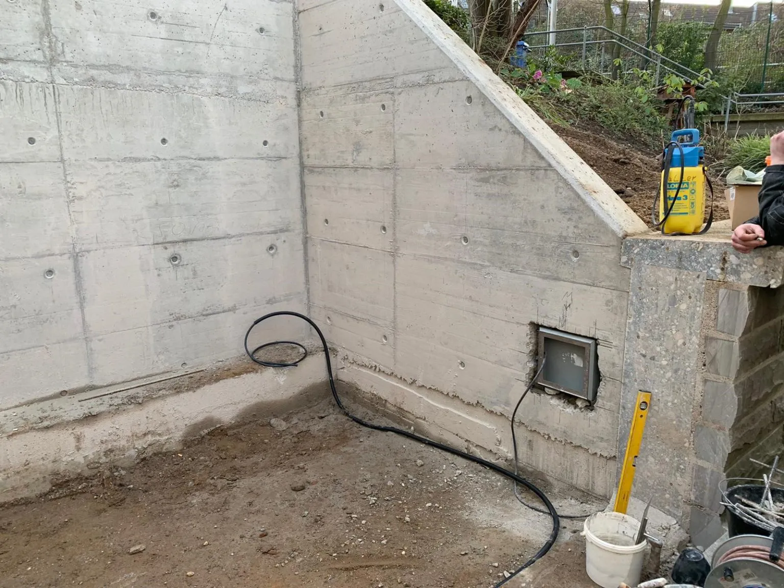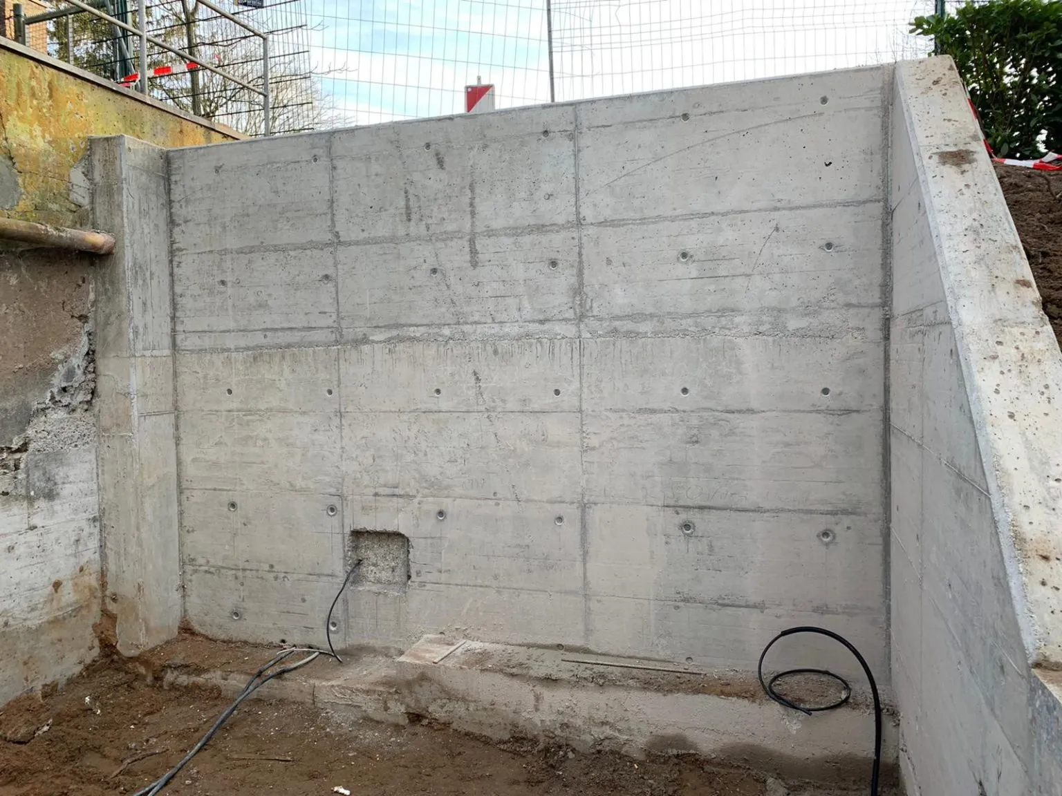 Die Rückseiten der Betonwand sind wieder verfüllt und die elektrischen Anschlüsse werden verlegt.