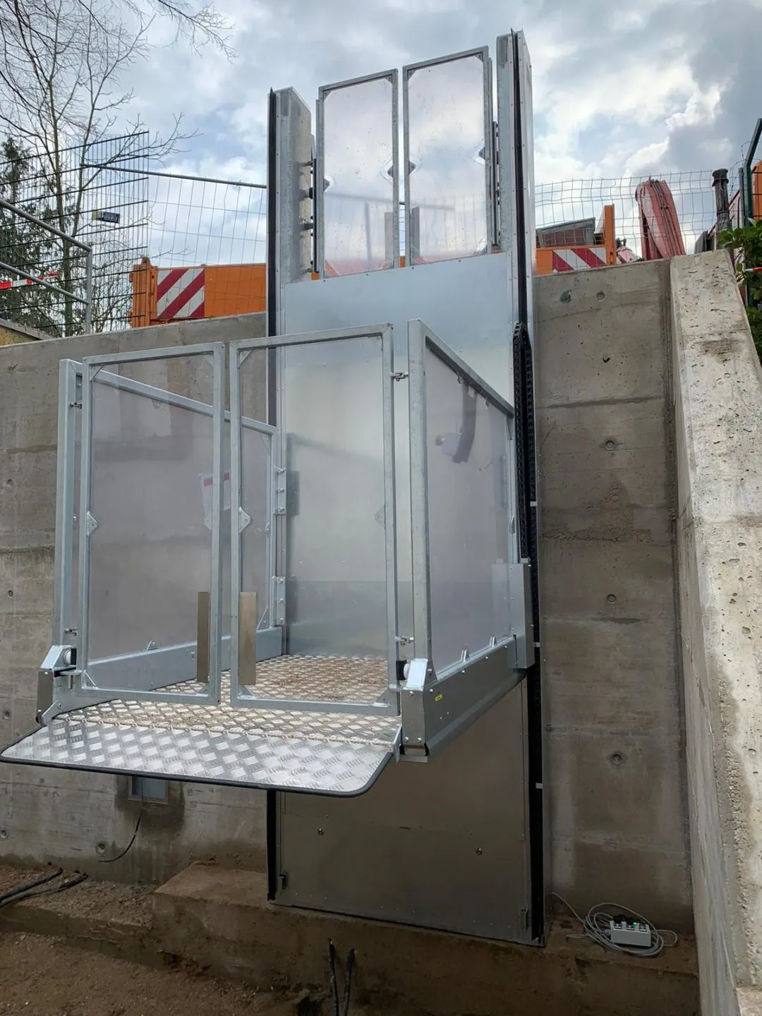 Der Aufzug wird montiert.