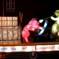 Mittlerweile sind die Fahrgestelle bis zu fünf Meter lang und bis zu drei Meter breit; die Gesamthöhe der fertigen Fackel darf bis an vier Meter reichen – die Begrenzung resultiert aus der Durchfahrtshöhe unseres Fackelbauplatzes. Auch unser Fackelbau befindet sich inzwischen in einer Phase, in alles anders – insbesondere immer größer, heller, beweglicher und technisch ausgefeilter – werden muss. Mit dem was Joseph Lange über den Werdegang der „Flimmflämmchen“ schrieb, haben unsere heutigen Fackeln nicht mehr viel gemeinsam. Das Ende der Fahnenstange werden wir aber noch lange nicht erreicht haben, denn der Fortschritt – wie Ausleuchtung mit LEDs, die inzwischen Lampe und Sofitte ablösten, der Digitaldruck, der heute schon heute den Plakat- und Fackelmaler erübrigt und Generatoren, die Auto- bzw. LKW-Batterien ersetzen – ist unaufhaltbar und unübersehbar.
